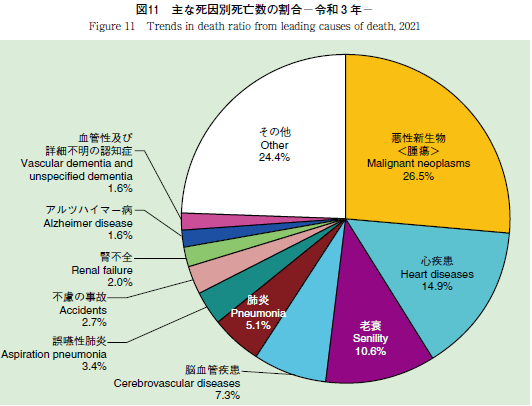 が病気が死因の半分を占めており、これらを 3大疾病 と呼んでいます。