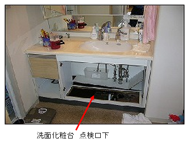 ① 洗面化粧台 点検口下 (同室の洗濯機置き場に設置されれている事もあります)