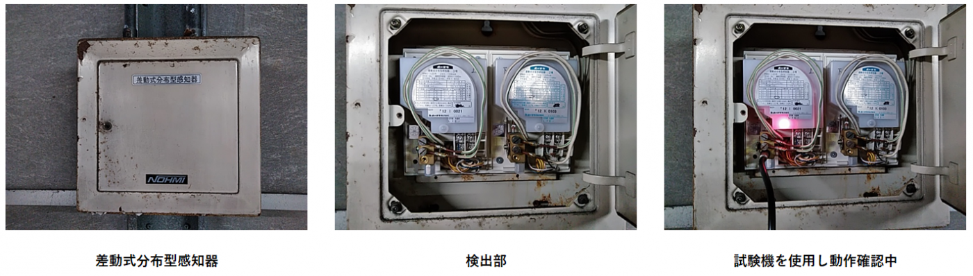 点検では、差動式分布型感知器の動作確認、ガス貯蔵タンクの容量確認、消火設備が起動した際の放送の確認や動作確認等を実施します。