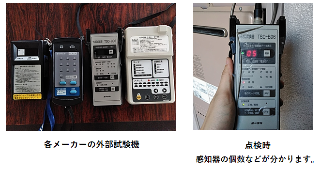 外部試験機という機械を使用して外から感知器試験を実施します。