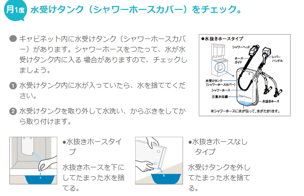 今回はその中でもよくお問い合わせをいただいている“洗面化粧台下の水受けタンク”についてご紹介します。
