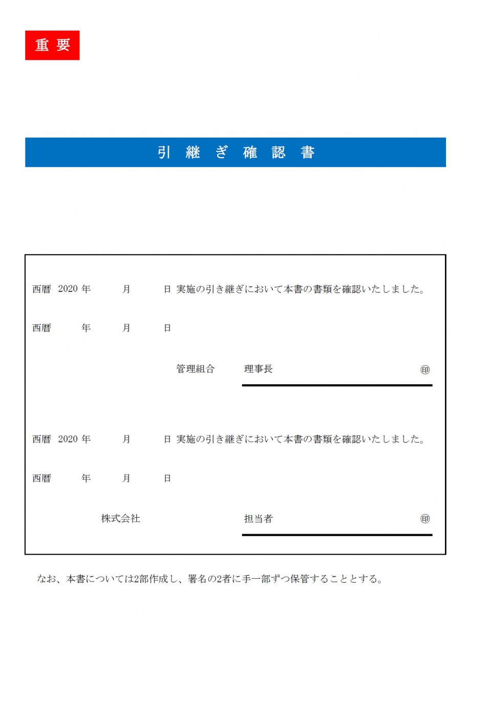 旧管理会社には「引継ぎ確認書」の作成を依頼しております。