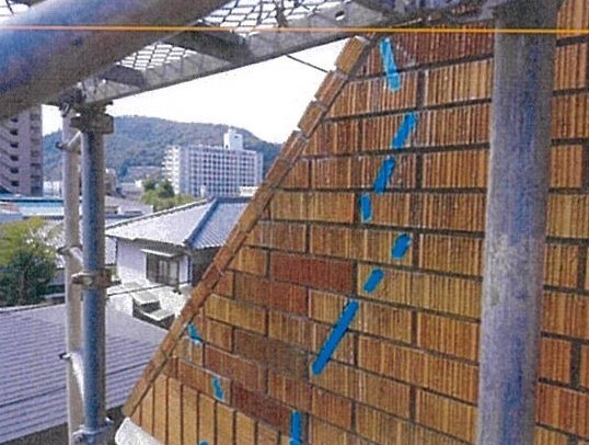 道路の斜線制限で建物に「斜め壁」になっている場合や、外壁二丁掛タイルの仕上が「深目地」になっている場合に、これらが原因で雨漏りが生じることがあります(深目地は浅目地より漏水の可能性が高い)。