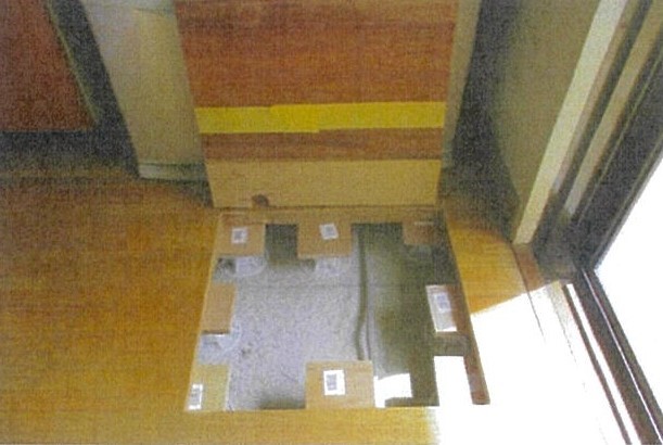 床仕上げ材を取り除き、コンクリート床面の確認を行いました。漏水は外壁からだけとは限りません。