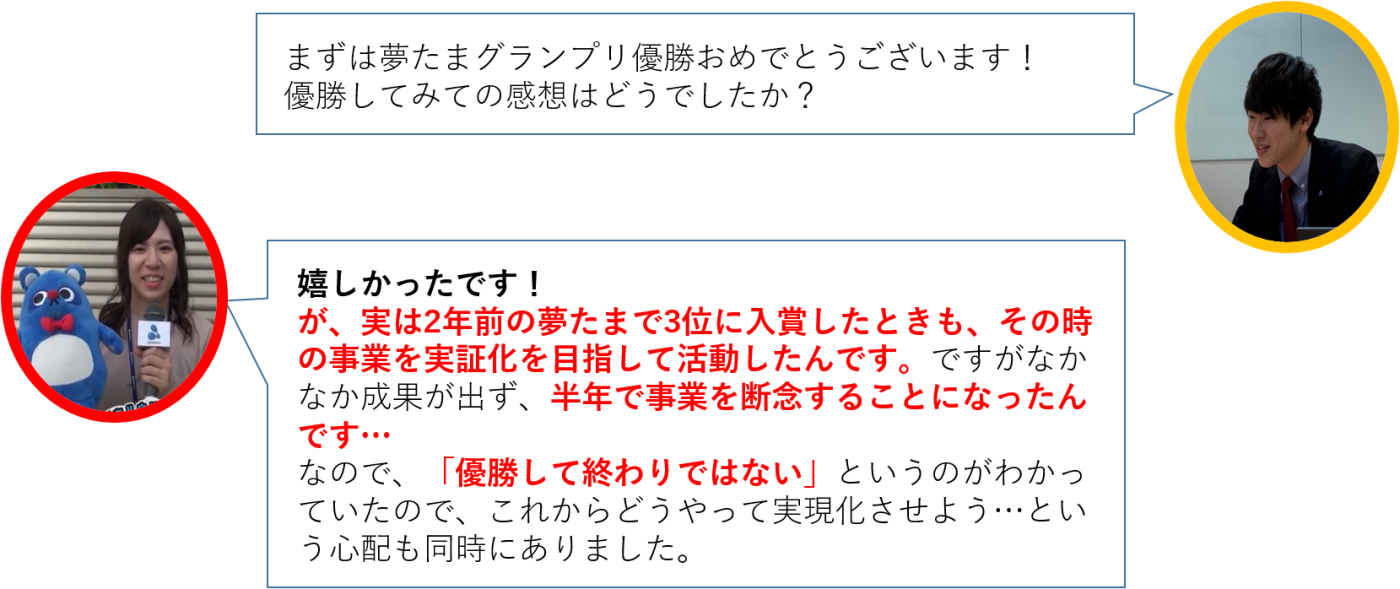 優勝してまだ半年なので、スタート段階ですが、実際に事業がスタートしていくのは夢たまの魅力ですね。