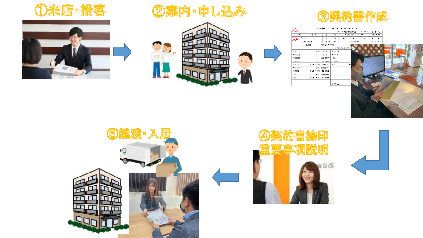 一人暮らしをしたことがある方はなんとな~く流れはわかるかなと思いますが、流れを表すとこんな感じ!