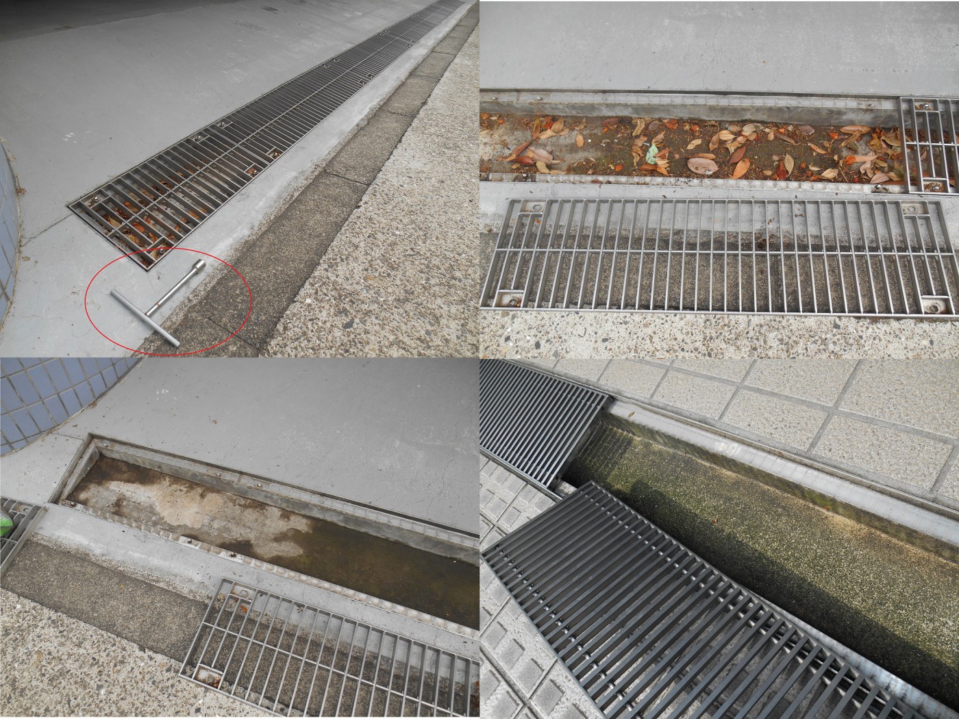 上の写真のようなグレーチング(溝のフタ)ですと溝の内部が見えません。
