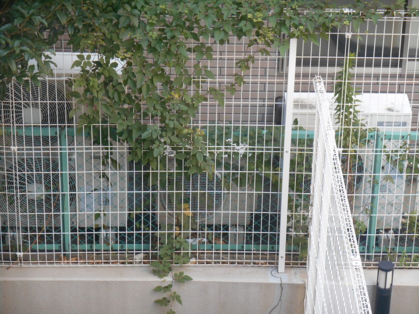 雑草の処理ですが、植え込み部分の雑草は処理されていますが、フェンスなどに巻きついた雑草がそのままのマンションがたまにあります。デザインではないので除くように指導します。