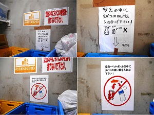 整理整頓されている、ごみ置き場。掲示物関係の手書きはNGにしています。