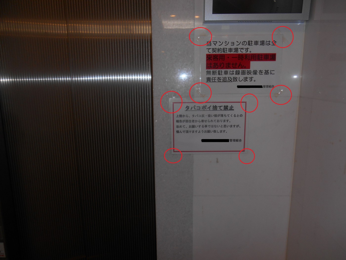 マンションのあちこちに注意喚起掲示物が掲示されていると美観的にも良くありませんが、外部のお客様にマナーの悪い居住者が多いマンションなのかと思われてしまいます。