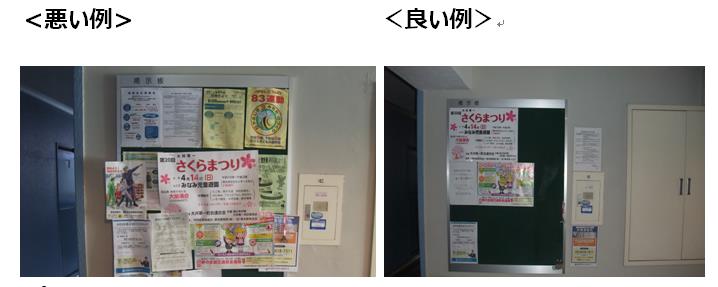 - 恒常的に掲示するものは、掲示板以外の場所に掲示する事も考える。