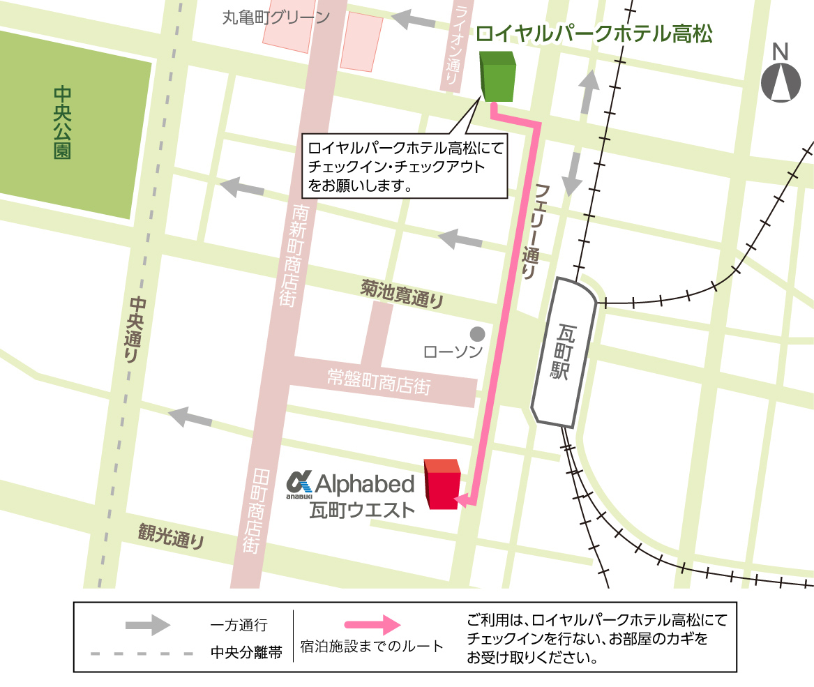 ※チェックイン・チェックアウトは近隣の提携ホテル(ロイヤルパークホテル高松)にて行います。