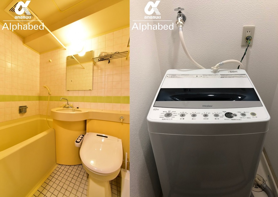 こちらが3点ユニットのお部屋になります。201号204号ともお部屋には洗濯機が配置されていますので