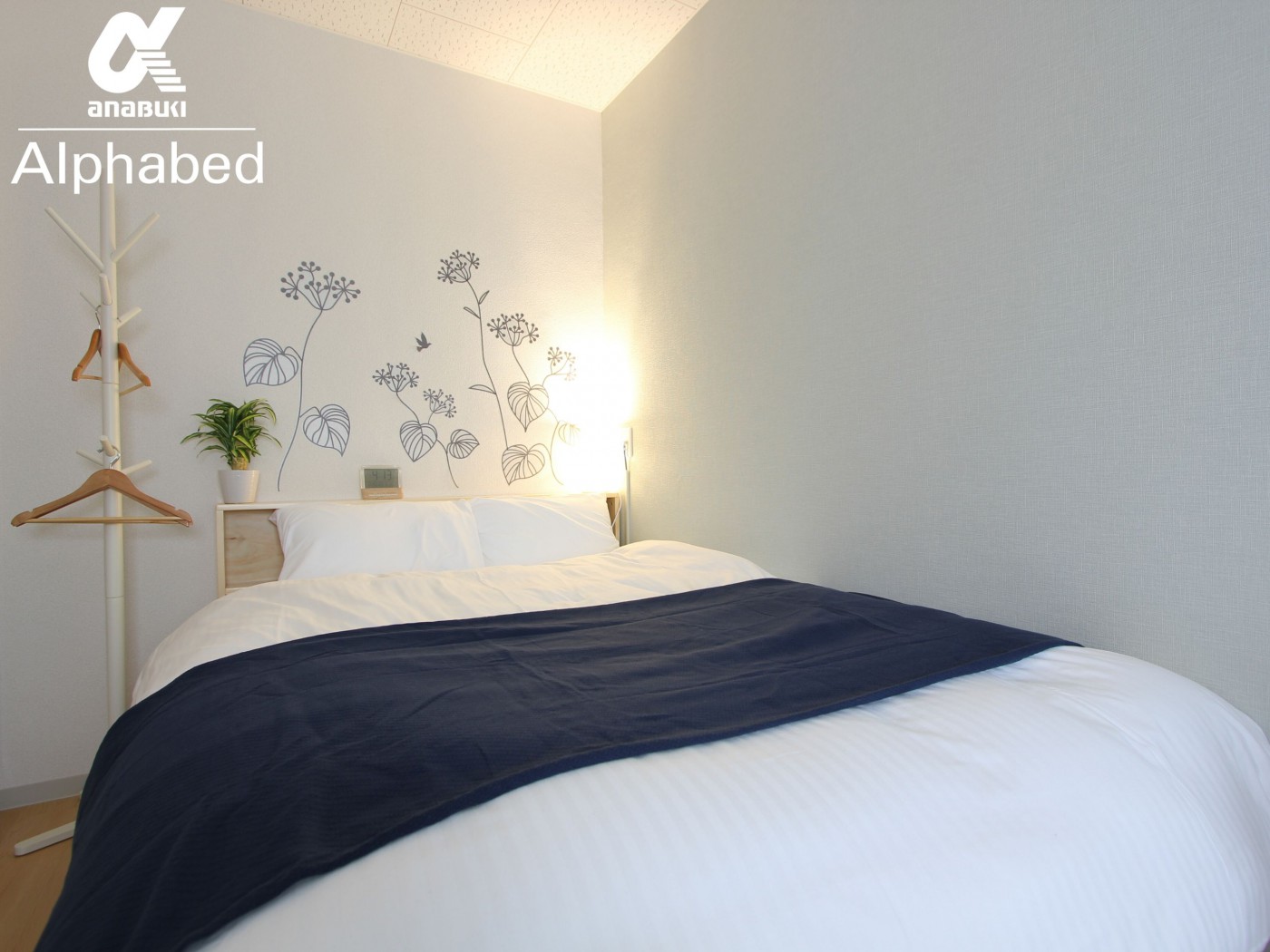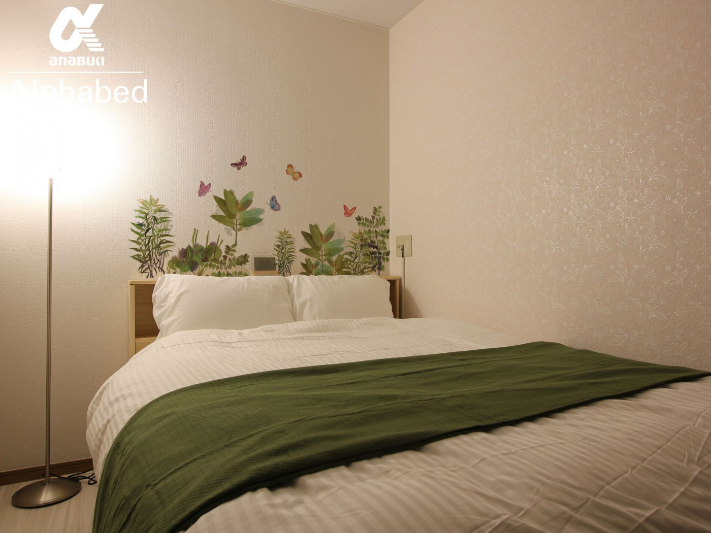 お部屋には、植物のウォールステッカーが貼られてあり、心地よくお過ごしすることができます。