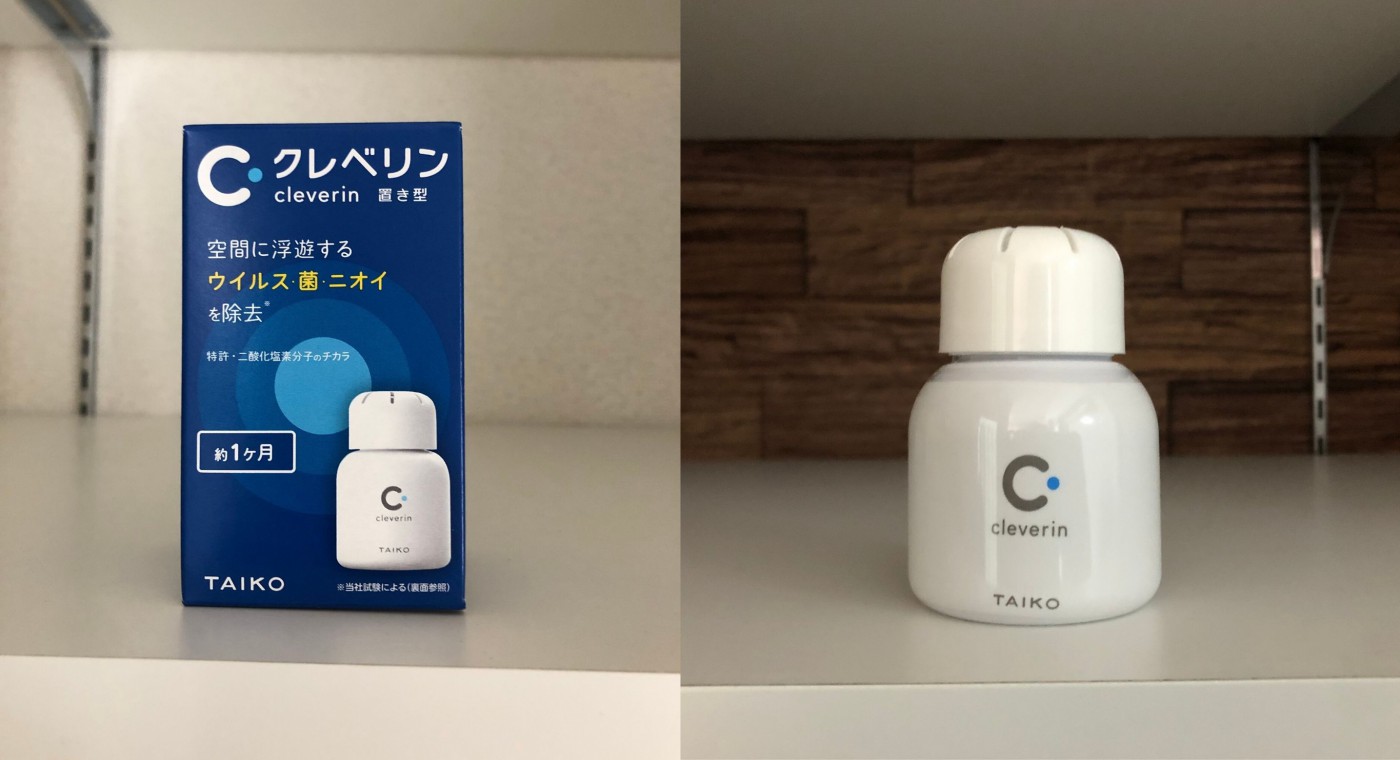 『cleverin クレベリン』には、空間に浮遊するウイルス・菌・ニオイを除去する効果がございます。