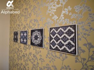 After:淡い黄色のクロスに張替え、アートパネルを設置しました。