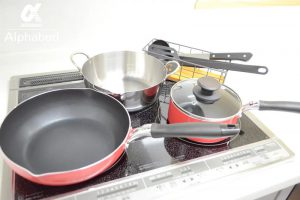 ・テレビ/冷蔵庫/3口IHコンロ/電子レンジ/電気ケトル/エアコン/洗濯機/室内物干し/ドライヤー/掃除機/食器/調理器具