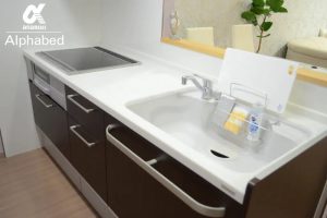 カウンタータイプのキッチンなので、リビングにいる方とお喋りをしたり、お子様の様子を見ながら調理したりすることができるので安心ですね。