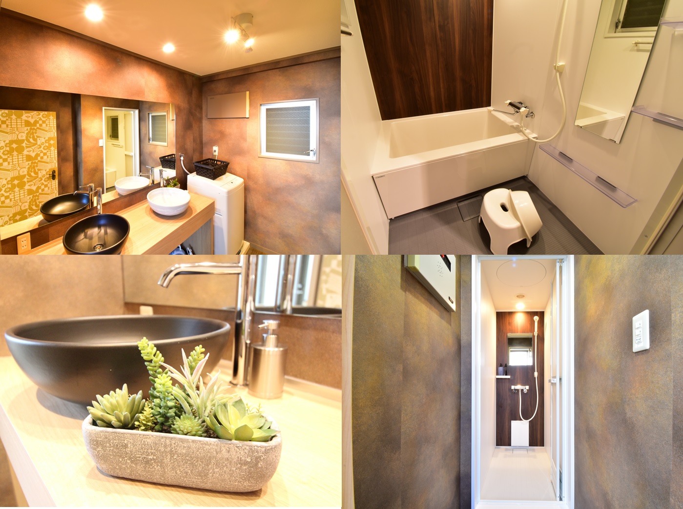 お部屋の中には、お手洗いが二つ、浴室の他、シャワールームを2室完備しており、