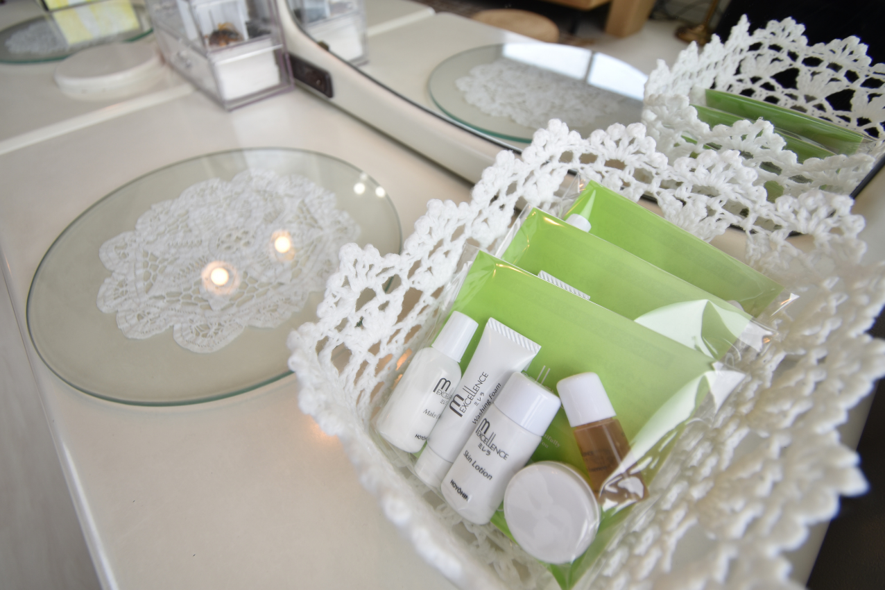 こちら、まるでデパートのコスメ売り場のような素敵な空間!こちらのメイク道具すべてご利用いただけます!ネイルもお店並みの充実ぶりです!