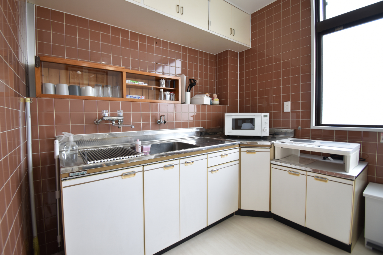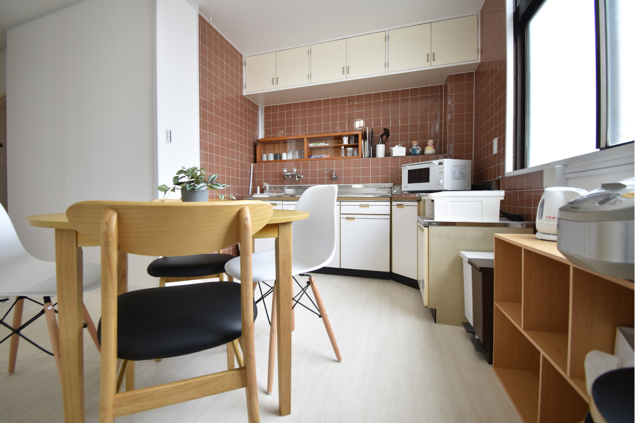 鍋やフライパン・食器類はもちろん、IHクッキングヒーターや電子レンジ、炊飯器、ケトルもそろっているので、建物の隣にあるスーパーで食材を手に入れて料理も楽しめます。※調味料などの食品は衛生上の関係で置いていません。