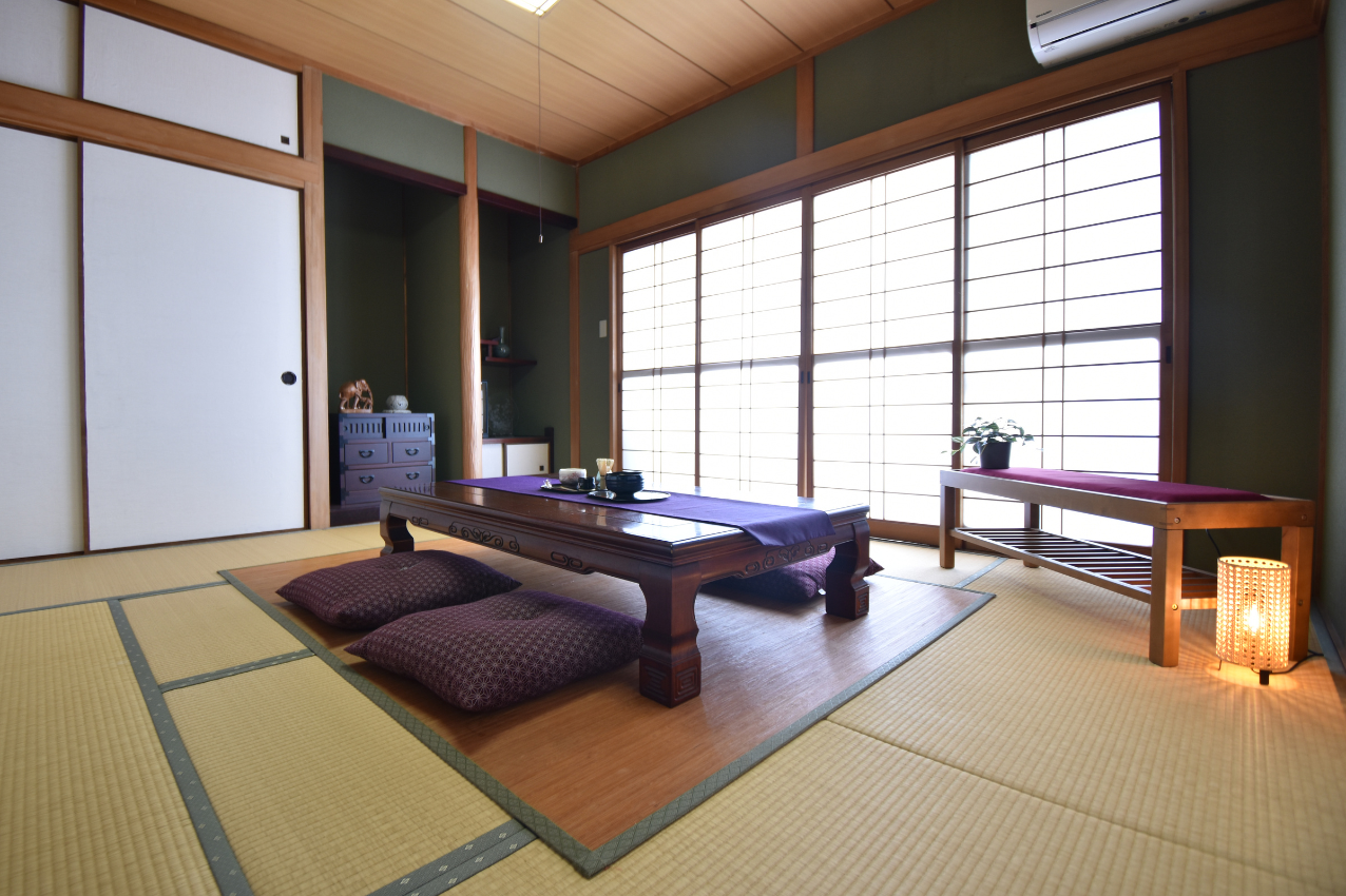 リビングの隣はシックな和室となっており、就寝時はこちらにお布団を敷いていただきます。合宿みたいで楽しそうですよね!
