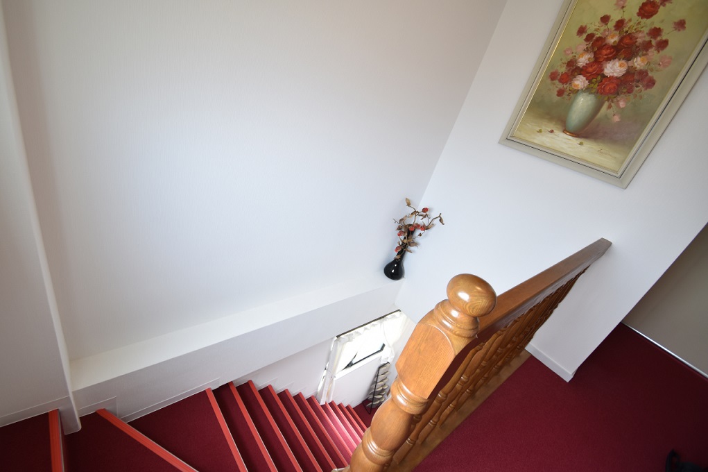 階段の手すりは使い込まれた雰囲気もありながら、飾り細工が施されています。