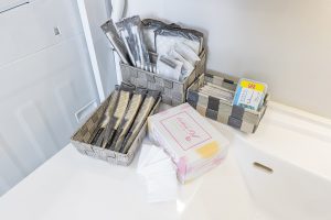 イメージ的にはビジネスホテルに設置してあるアメニティのレベルを準備すると良いです。