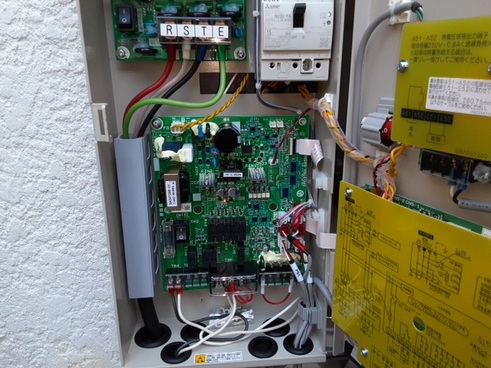 ポンプを取り付けて制御盤内の配線を繋いでいきます。