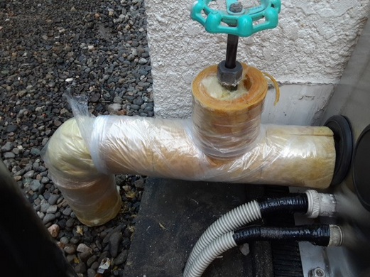 結露や凍結などを防ぐために保温カバーを付けます。