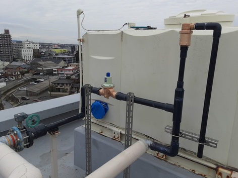 受水槽から揚水ポンプで高架水槽に給水しているマンションの方式を切り替えます。