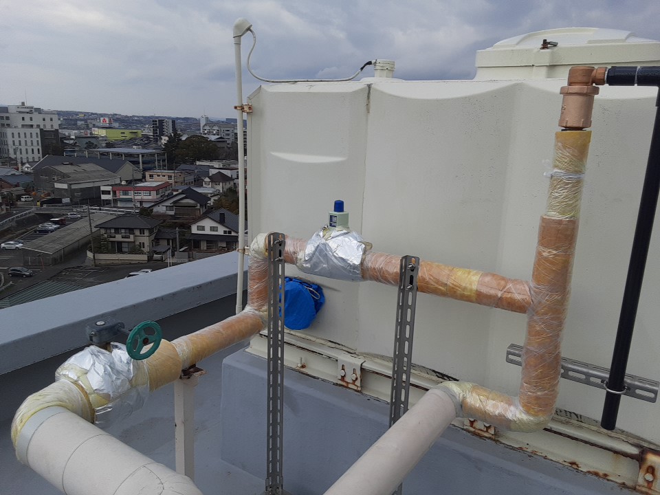 保温カバーを取付けて高架水槽の作業は終了となります。