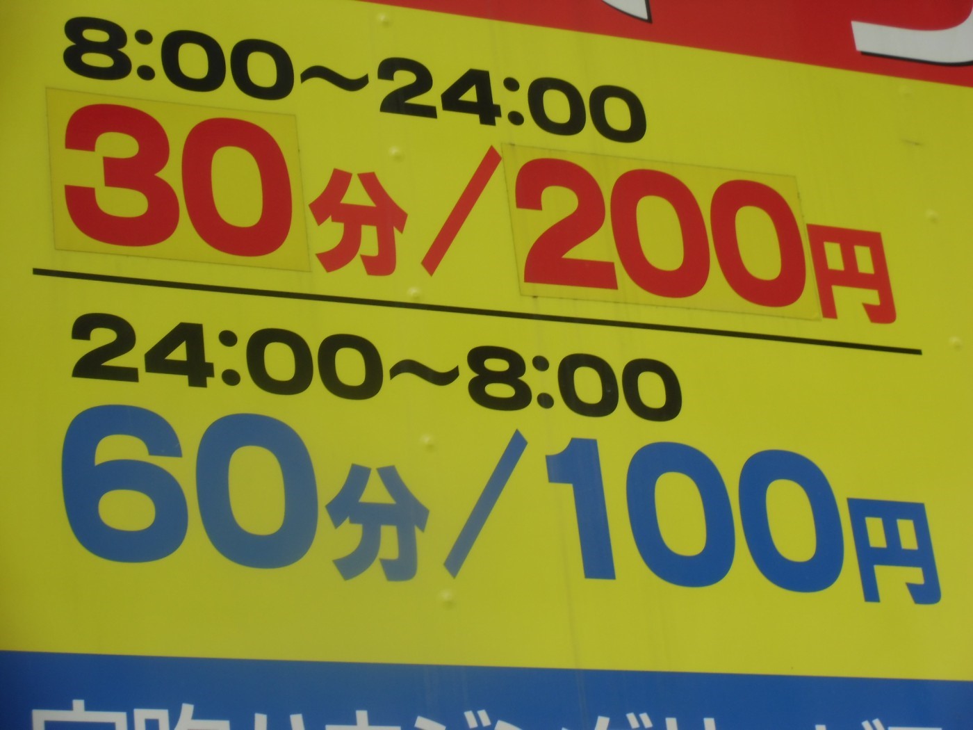ただし、最大料金の適用が1回限りと看板に記載してありますので、2日目の料金は単位料金を見ていく必要があります。