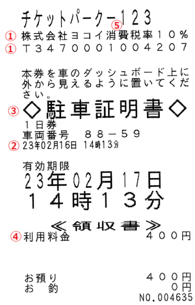 今回はコインパーキングのレシートを参考にしますので、適格簡易請求書の内容で