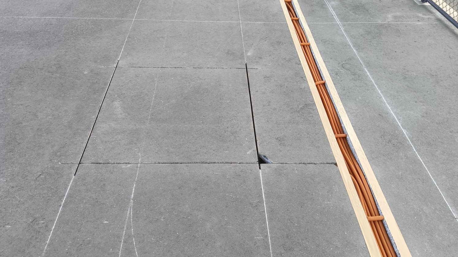 ・ループコイル(※下記3記載)を埋め込むため、また、よく見かける『満車・空車』看板や看板照明等、電気配線が必要な箇所への電気配線の為に、カッター工事でアスファルトに一部切り込みを入れます。