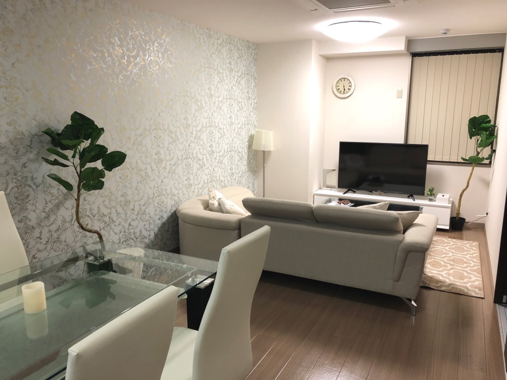 ホテルと違って、4人~7人ぐらいで過ごせるお部屋も多数ありますし、なんといっても通常の分譲マンションと同等レベルのお風呂があったり、キッチンも洗濯機もあり、家電製品や食器なども充実していますので、おうちで暮らされるのとなんら変わり無く快適にお過ごしいただけると思います。