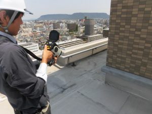 ということで、今回、修繕工事日記~マンション屋上防水補修工事編(その2)~をご紹介させていただきました。定期的に点検を行い不具合箇所を修繕することで、防水機能を延命することができます。不具合箇所の特定には、くまなく目視・触診する方法のほかに、赤外線カメラを使用して赤外線サーモグラフィを用いた熱エネルギーの可視化による防水層内部の通水の有無や不具合箇所を調査する方法もあります。