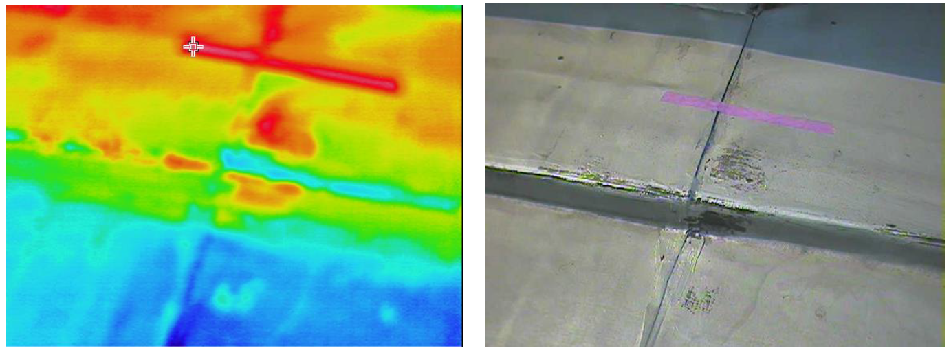 目視・触診にて、くまなく不具合箇所(雨水進入口)を調査しても、わからない場合もあります。その場合は赤外線カメラを使用して漏水箇所を調査する方法があります。