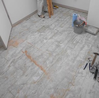 フローリングを張った後は、ボンドが乾くまで(約24時間程度)絶対にフローリングに乗る事は出来ません!