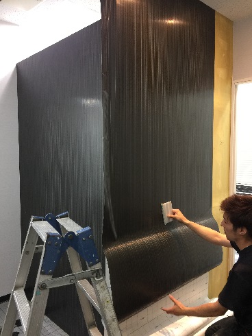 先日、会社の受付になる予定の壁に施工させていただきました。