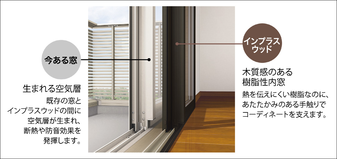 既存の窓と内窓の間に生まれる新しい空気層が室外と室内をしっかり隔てる構造に