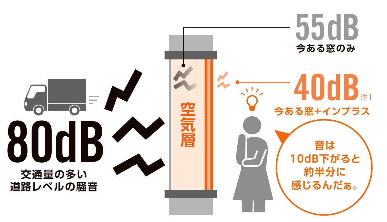 内窓には結露の発生を抑える断熱効果だけではなく、空気の層で遮音性を大幅アップ!