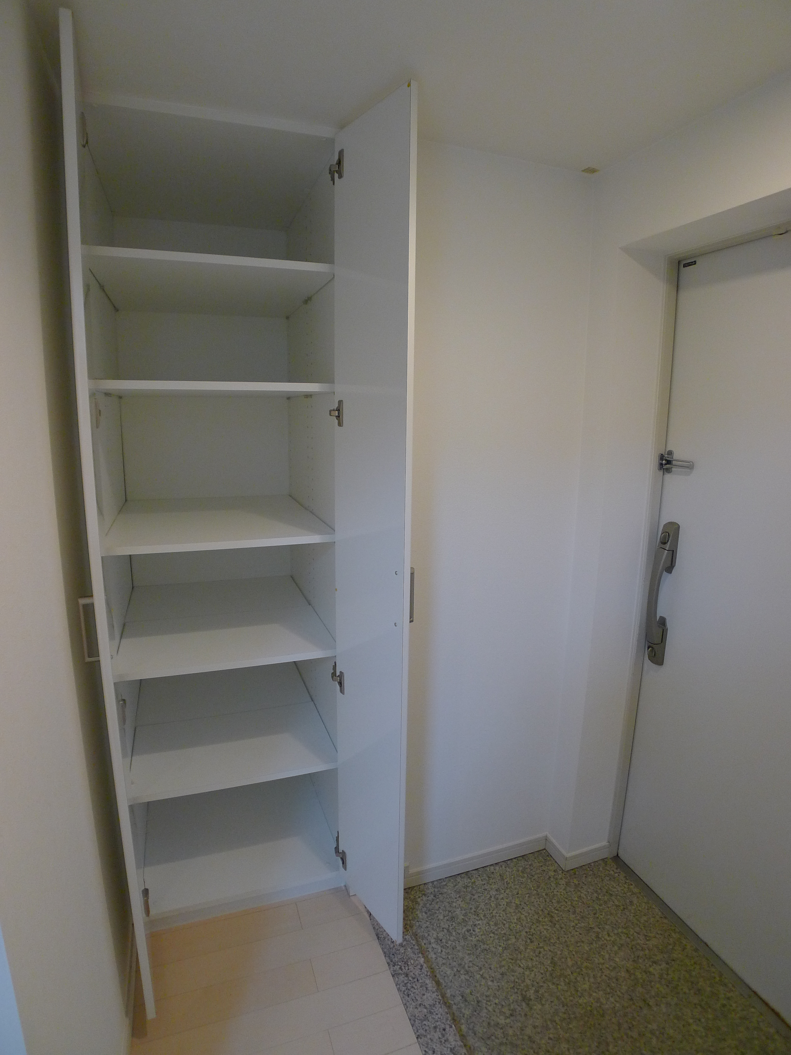 廊下・洗面台下に収納スペースがあるほか、玄関には奥行きのあるシューズボックスが備えられています。
