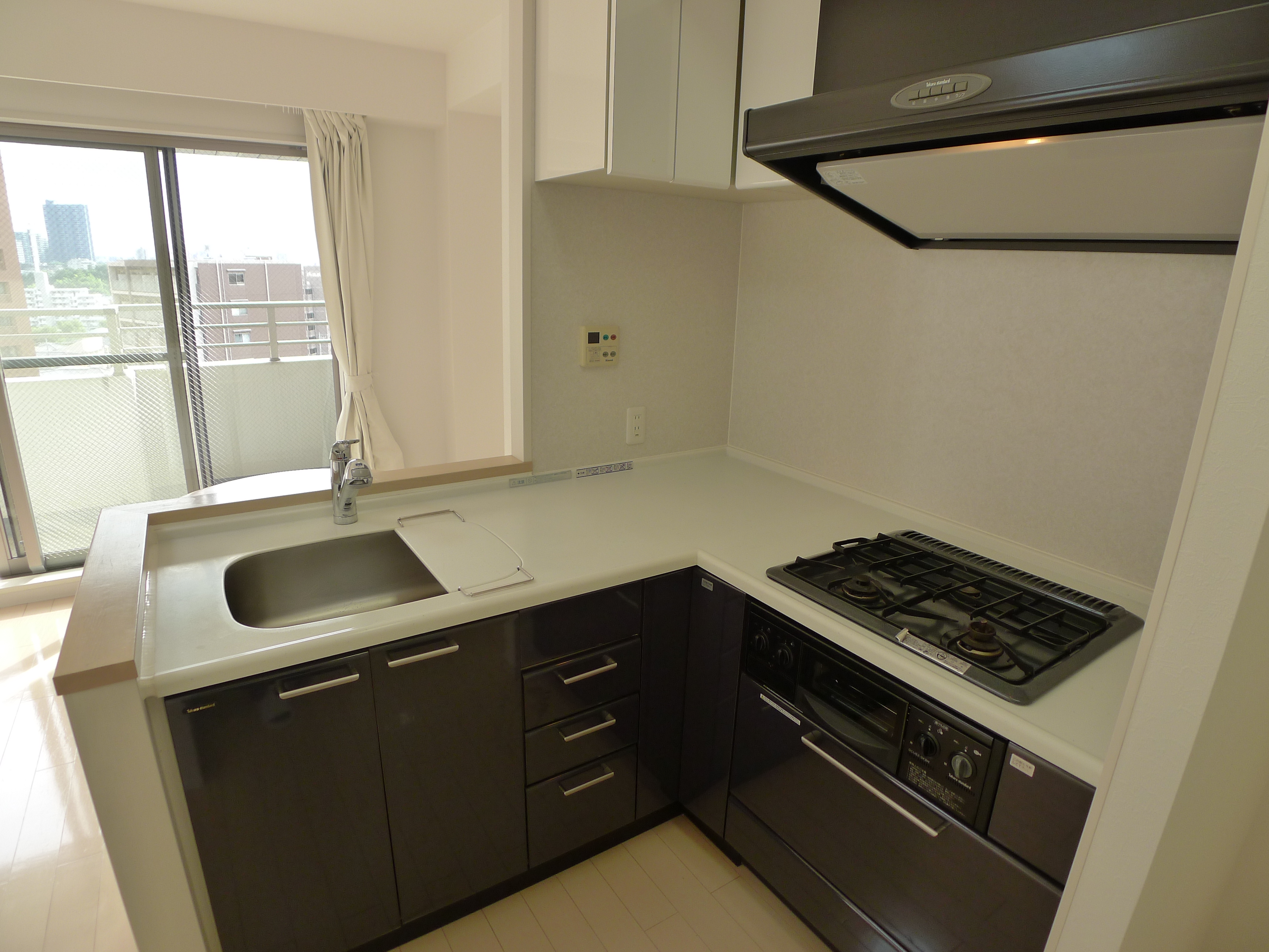キッチンは使いやすいL字カウンターキッチンです。眺望がいいので、よりお料理をお楽しみ頂けます。