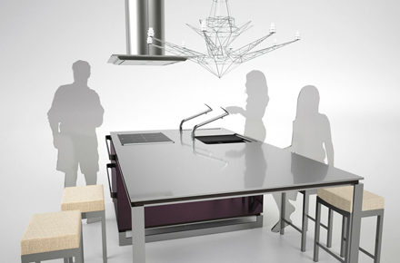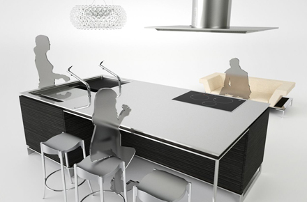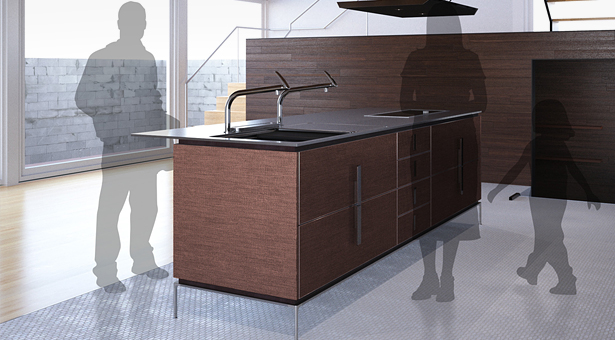 キッチンに求められる機能は、「料理をする」、「家族が集う」、「友人を招く」だけではなく、子供はキッチンで勉強したり、旦那さんはワインを傾けながら寛ぐ。奥さんは料理をつくり、家計簿もつける。そして、家族や友人が集うパーティーまで考えると、キッチンはますます巨大になることで、世代を超えて集う新しいエンターテインメント空間が実現できます。