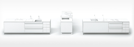 また、ライフスタイル重視のシステムユニットは、宙に浮いたソリッドな収納ユニットにはデザインだけではなく使いやすさと収納力のノウハウが凝縮されています。デザインを統一した「3段引出し」や「食洗機ユニット」、「サイドストレージ」を組み合わせることで、機能重視の拡張性を実現できます。