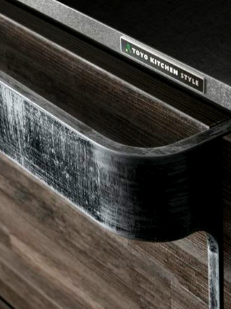 トーヨーキッチンがドアで採用するHPL(ハイプレッシャーラミネート)は強靭な耐久性を誇ります。過酷なキッチンでの使用においても、20年以上も色合いを保つ耐光性にも優れています。また、最先端デジタルプリントと特許技術でもある表面の深く複雑なテクスチャーによる、本物以上の美しいデザインは、永きに渡るヨーロッパの専門ブランドとのパートナーシップによって開発しています。