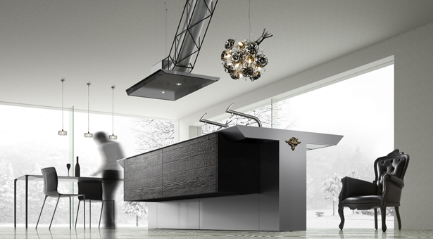 宙に浮く新しい独自の快適なキッチン脚「エアフロー」。キッチンをリビング側に設置することは、部屋に向かって壁を立てているのと一緒です。