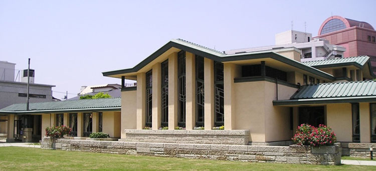 また、帝国ホテルの建築を最後まで行った助手の遠藤新の紹介により、1921年 東京 池袋にある自由学園校舎(現・自由学園明日館)を設計します。自由学園の創立者夫妻の目指す新しい教育理念に共感したライトは、「簡素な外形のなかにすぐれた思いを充たしめたい」という夫妻の希いを基調とし、自由学園を設計しています。