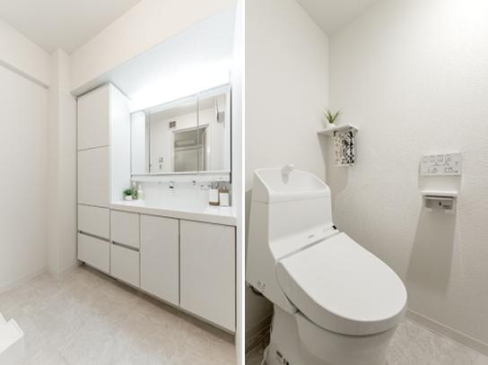 最後にサニタリートイレです。タオルなどもたっぷり入るトールキャビネットを入れました。我が家にはこんな収納がないので羨ましいです。